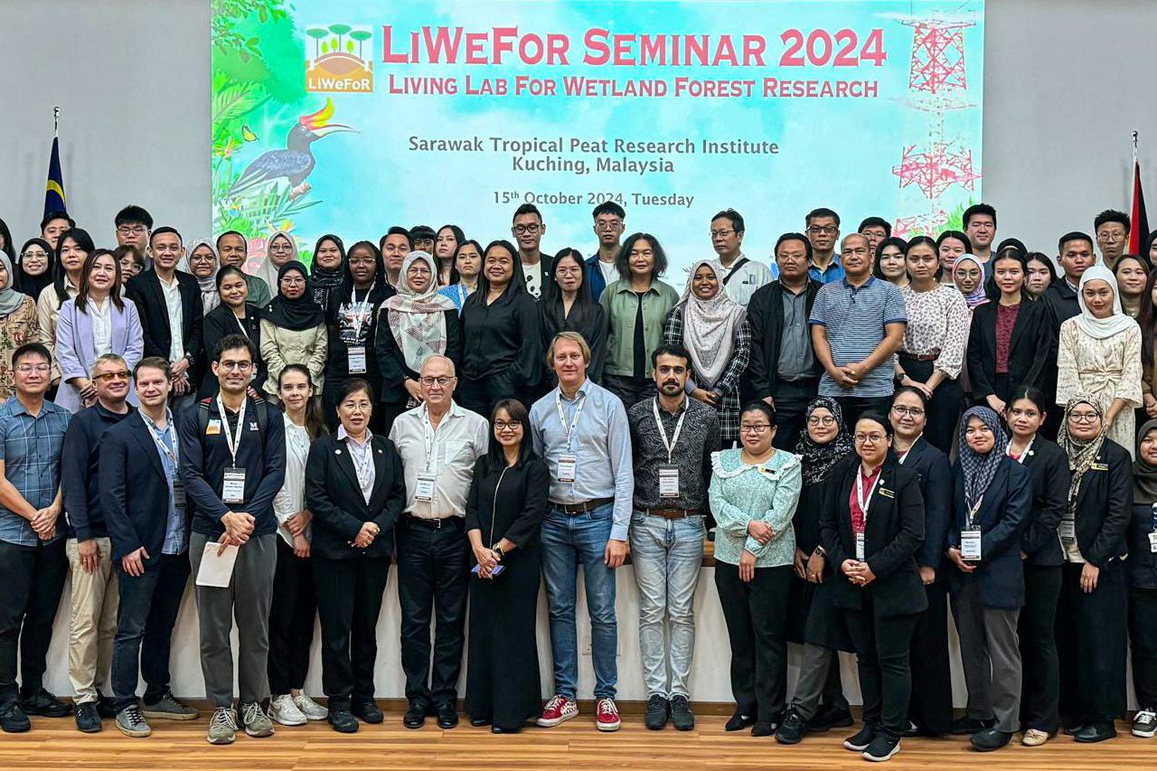 Over 100 participants attended the Living Labs for Wetland Research (LiWeFoR) seminar 2024 at Sarawak Tropical Peat Research Institute. The one-day event aimed to establish and develop a global network of Living Labs. The seminar featured 15 oral presentations and poster sessions on topics ranging from GHG emissions in tropical peatland forests to research from boreal regions.