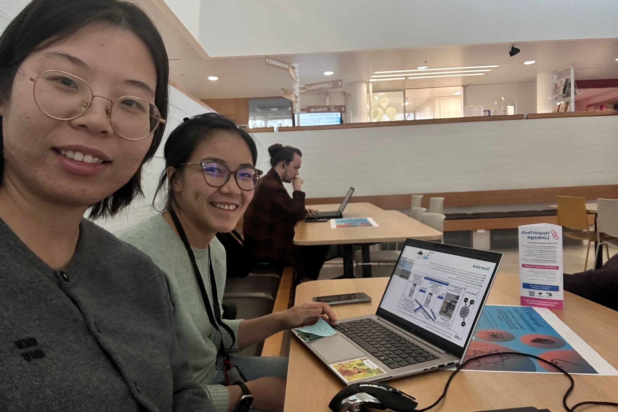 Figure: Si (on the left) learning bioinformatics with post-doctoral researcher Ramita Khanongnuch (UT/LUKE) (on the right). (Photo credit: Si Chen)